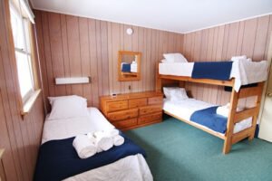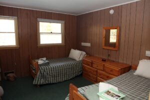 Basic Rooms include our Cedar, Blue Heron, and Maple buildings, with each pair of rooms sharing a bathroom down the hall. Most of these rooms have a Queen and a Twin bed, while some only have a Queen or two twins.