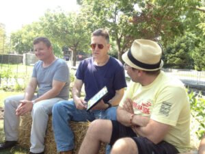 [dropcap]O[/dropcap]n Sunday, July 29th, Hazon Cross-USA Riders met Robert Nevel, Founder and Director of the award winning, nationally recognized Food Justice and Sustainability Program at KAM Isaiah Israel. They toured the gardens and helped the KAMII crew with the morning harvest and delivery of produce (in the Hazon Cross-USA Ride Van) to a nearby soup kitchen.