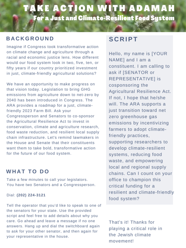 Ways to Take Action with Adamah’s Farm Bill Campaign